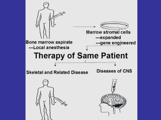 Strategy: 1. Isolate stem cells from marrow that normally repair tissues. 2. Grow large numbers. 3. Give them back to same patient to speed up repair. |