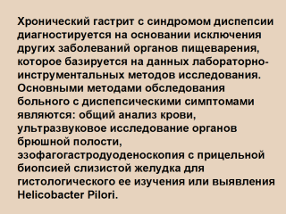 хронического гастрита с синдромом диспепсии и синдрома раздраженного