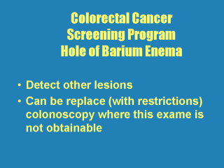 The hole of Barium Enema (BE) has been underestimated. Patients with positive biopsies at sigmoidoscopy and a good BE can perfectly go to surgery, if colonoscopy takes long to be performed. Delays in operating a cancer patients are unforgivable.