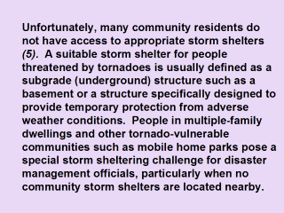 lack of tornado-shelter drills for tornado-vulnerable communities may