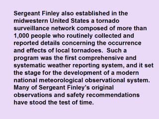 | For example, he recommended that "persons residing in tornado-prone regions should build underground shelters" to provide protection from these storms (15). However, other observations such as the recommendation that "tornadoes can be safely observed from a distance of 300 yards" were not as prudent. (Current recommendations are that anyone threatened by a tornado should take shelter immediately. |