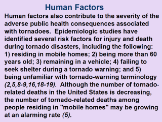 tornado warnings. Elderly people are also at risk from tornadoes for