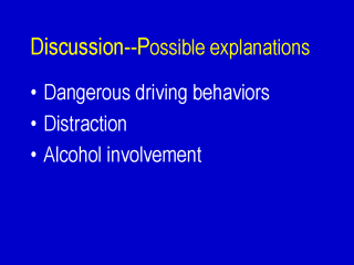 Why does carrying passengers increase the crash risk for teen drivers? There are some possible explanations: It is possible that teenagers are more likely to be speeding, running red lights, and performing other risky behaviors when traveling with peers. It is also possible that teenagers do not fully concentrate on the driving task while traveling with peers. If the teenagers are traveling with passengers who can legally purchase alcohol, they might bring alcohol into the car and increase the likelihood of driver being impaired by alcohol. |