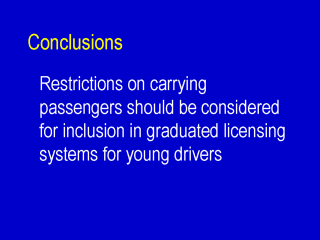 We do not know what kind of passenger restriction would be ideal but we do know that the restriction should be part of graduated licensing and should not have exceptions for passengers between ages 20 and 29. |