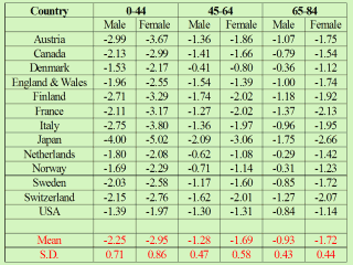 Average Annual Percent Change in Age-Adjusted Mortality By Age and Sex, 13 Countries 1950-1998