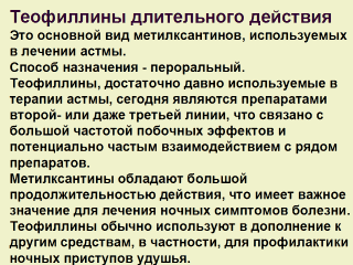бронходилатирующее, а не противовоспалительное действие. При их применении