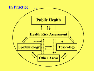 any of the two fields or disciplines listed in the diagram. The actual impact of one field on another, or its actual contribution to another, is perhaps more a matter of situation or of one’s own perception and perspective. For instance, in underdeveloped countries where public health is less a privilege, epidemiology as a formal field or profession is almost unheard of. In those countries, health risk assessment is also a luxury, not a necessity like medical care.
