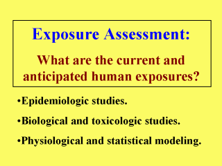Exposure assessment is a key component of health risk assessment (RA), in that there shall be no health risk or hazard in the absence of exposure. The primary objectives of this central component are to determine the source, magnitude, and duration of contact with the agent at issue. Exposure to a toxic agent typically can occur through three major routes of entry: inhalation, dermal, and oral. Exposure assessment is also frequently considered as the key area for uncertainties in the overall RA process. This is because exposure scenario is usually very dynamic, depending on several factors that cannot be easily quantified or ascertained, such as the exposure rate and duration, the contact activity, and the exact availability or location of the agent. Assessing human exposure can be accomplished by three basic techniques: (1) measurement of environmental concentrations with which to mathematically extrapolate the ingestion, the inhalation intake, and the dermal uptake of the toxic material by a person; (2) direct measurement of the toxic agent on or in a person, such as through biological monitoring with body fluids; and (3) physiological or statistical modeling to yield a more realistic dose estimate. Pharmacokinetic data even from animal studies are essential to biomonitoring, to the uptake and intake mathematical models, and to physiologically-based pharmacokinetic (PB-PK) modeling. Otherwise, it will be unclear how much of the (absorbed) parent compound will remain unchanged and present in the human blood or urine. Epidemiology is currently about the closest discipline in which human exposure assessment is ever taught (relatively) extensively. |