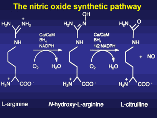 L-arginine to L-hydroxyarginine and subsequently to nitric oxide and