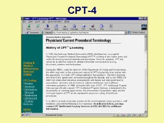 Also widely used is the CPT, used to code “procedures” just as the ICD is used to code diseases. The