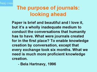we in? Something about the dissemination of rigorous information Delivery mechanism doesn't have to be paper |