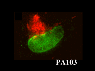 of the J774 macrophage with wild type PA103. Bacteria ball adhere to the
