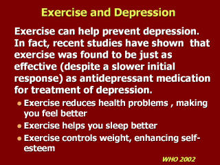 can benefit. Regular physical activity improves one's mood, helps relieve depression, and increases feelings of well-being. |