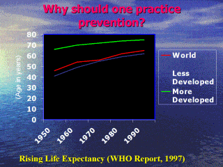 The world is healthier than it has ever been, with a 30 year global increase in the past 100 years. The dramatic increase in life expectancy that was observed in the past century in both developing and developed world can be attributed primarily to improved preventive practices, not to advances in clinical medicine. It has been estimated that the majority of the increase in life expectancy was due to prevention.