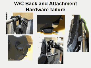 Attachment hardware bent severely, the drop hook type hardware was flattened, and the pin shaped lower hardware was released from the retention slots. |