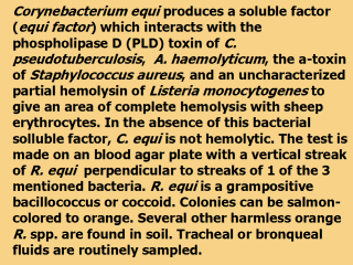 R. equi (orange to salmon pink) has equi factor and will lyze blood