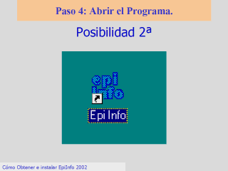 Vaya a su escritorio y busque un icono de acceso directo a EpiInfo. Pulse sobre él y tendrá el programa a su disposición. |