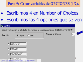 nos permite elegir el número de opciones que tendrá la variable y el nombre