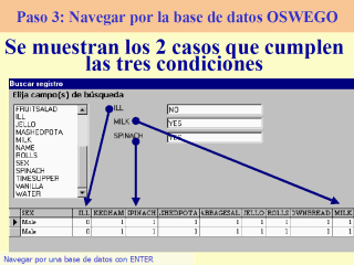 En este caso hay solo dos personas que han tomado espinacas y leche y que están enfermas.