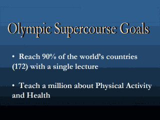 | The potential numbers are staggering. We potentially can reach 90% of the countries of the world with a single prevention lecture. We want to teach at least a million students about physical activity and health. |