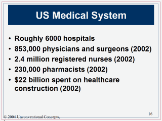 http://www.hospitalconnect.com/aha/resource_center/fastfacts/fast_facts_US_hospitals.html Physician Characteristics and Distribution in the U.S., 2004 Edition and prior editions. American Medical Association. http://www.dol.gov/wb/factsheets/Qf-nursing.htm http://www.bls.gov/oco/ocos079.htm http://www.keepmedia.com/ShowItemDetails.do?ema_id=36998&item_id=115261&oliID=176