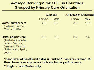 indicates "Years of Potential Life Lost." More primary care-oriented health