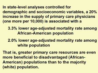 | Source: Shi L, Macinko J, Starfield B, Politzer R, Xu J. Primary care, race, and mortality in U.S. states. Soc Sci Med 2004; in press. |
