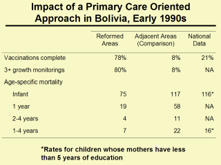 population. Source: Perry H, Robison N, Chavez D, Taja O, Hilari C, Shanklin D et al. The census-based, impact-oriented approach: its effectiveness in promoting child health in Bolivia. Health Policy Plan 1998; 13(2):140-151. |