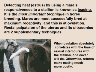 take First note that this lecture is partly based on Horse Breeding by Gary Heusner of the University of Georgia College of Agricultural & Environmental Sciences, Bulletin 945 (1993). All photographs were kindly supplied by Vaughn W. Henry, http://gift-estate.com/horse.html. Also read Ginther, O. J. 1979. Reproductive Biology of the Mare: Basic and Applied Aspects. McNaughton & Gunn, Inc. Ann Arbor. |