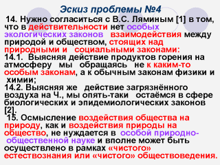 17. Экология человека (ЭЧ) как наука: 17.1. Изучает законы, принципы, методы оптимизации способов деятельности людей, взаимодействие её субъективных и объективных факторов (общественное здравоохранение);17.2. Объектом исследования ЭЧ является, таким образом, не всякое взаимодействие Ч. со средой, а только то, которое опосредовано сознательной деятельностью людей – на основе нормативно правовых актов.[1] Лямин В.С. География и общество. М.: Мысль, 1978. С. 205-218. [2] Ю.Г. Марков. Социальная экология. Новосибирск: Наука, 1986. С. 45. |