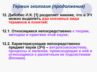 13.1. Сужают проблему и упускают принципиальные моменты, связанные с феноменом Человека (Ч.);13.2. Недостаточно учитывается уникальность Ч. как мыслящего существа, активно преобразующего природную среду и создавшего техносферу - плод его интеллектуальных и физических усилий;13.3. Сглаживают и нивелируют аксиологические (ценностные) представления о предпочтительности благ, являющихся желаемыми для Ч. и соответственно предметом его стремлений;13.4. Забывается, что в Э.: «…социальное в конечном счете оказывается на переднем плане, поскольку это сознательная целеустремленная деятельность людей, активно преследующих свои интересы [2]».[1] Дибобес И.К. Новое слово в экологии человека// Энергия: экономика, техника, экология" № 3, 2000, c.38-39. [2] Глазачев С.Н. Экология: учебная книга // «Экология и жизнь». – 2003. - №1(30). – С.5-7. |