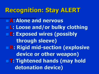 assisting in the recognition of potential Suicide/Homicide suspects. Vernon A.Responding to Suicide Bomber Events Tactical Edge 2004; 22(3): 52 - 54. |