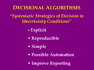 Concurrently, but not alternatively, several decisional algorithms have been published, combining and scoring different criteria as an explicit approach, claiming the advantage of avoiding subjective bias.