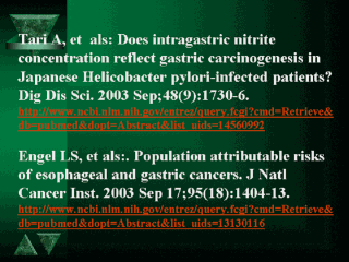 causal en el desarrollo del cáncer de estómago. Engel y otros realizaron un estudio sobre riesgo atribuible poblacional para cáncer esofágico y cáncer gástrico, entre los cuales se incluían los nitritos.