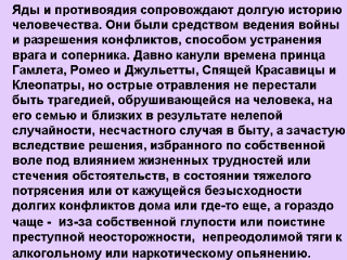 Проблема острых отравлений, так или иначе, интересна для любого человека, а тем более врача. Особую актуальность она приобрела в последние десятилетия вследствие накопления в окружающей среде огромного количества различных химических веществ. Известный микробиолог Раймон Виллен недавно сказал, что "человек живет, окруженный своей сапрофитной флорой, как говядина, завернутая в целлофан, в супермаркете". По мнению всемирно известного французского токсиколога, профессора Chantal Bismuth, кроме того, а может и еще больше, человек погружен в химические молекулы, которые он впитывает всеми путями, и от которых он не всегда без всякого сожаления избавляется. В самом деле, экзогенным ядом можно считать каждое вещество, попавшее в организм, в количестве достаточном, чтобы причинить вред, вследствие прямого повреждения или в результате действия его метаболитов. |