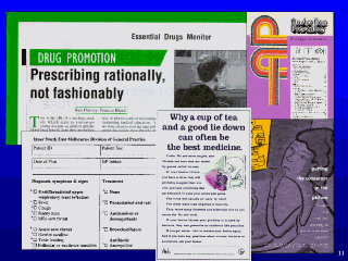 This shows a few of our national change strategies: educational campaigns designed to teach critical appraisal of pharmaceutical promotion; drug audit sheets for community doctors; educating the medical educators and encouraging curriculum development and consumer conferences and education including posters for outpatients and doctors waiting room's designed to reduce patient expectation of receiving antibiotics for viral upper respiratory infections. |