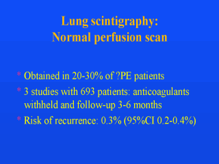 perfusion lung scan effectively rules out PE in the vast majority of patients. Withholding