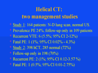 proportion of patients with a normal helical CT received anticoagulant therapy. Further