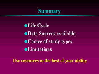 most appropriate choices of study type, and the limitations of each study and data source. I