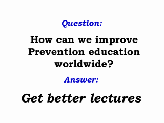 | The concept of the Supercourse is simple To improve the teaching of epidemiology, global health and the Internet in medical, veterinary, nursing schools one can improve the lectures. We hope to work to establish a supercourse for the Westernpacific region of WHO on Diabetes and other Non-communicable diseases. |