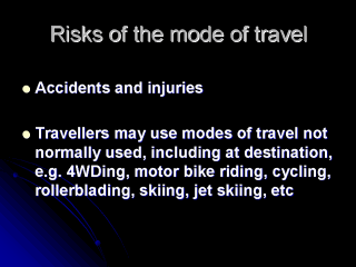injuries may also befall travellers, who may use modes of travel not