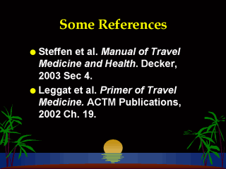 Travel Medicine and Health by Steffen et al (2003) remains a useful and