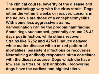 The role of T cells in acute demyelination is unknown. The degree of myelin destruction has been correlated with the amount of viral antigen in the tissues. Whether progressive demyelination in chronic disease is immune-mediated is also unknown. |