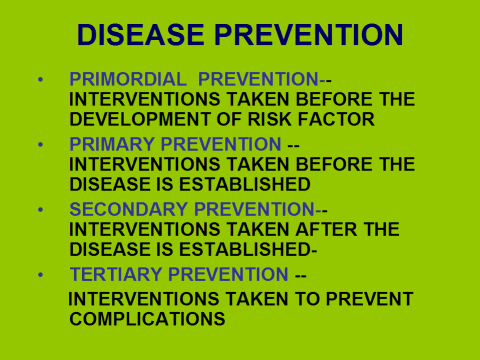 LEVEL, PREVENTION CAN BE TRIED AND SHOULD BE TRIED. EVEN BEFORE DEATH, SOME THING CAN BE TRIED TO MITIGATE THE SUFFERING. PHILOSOPHY OF PREVENTION IS THE CORNERSTONE WHILE DEALING WITH PATIENTS IN HOSPITAL SETTING OR IN POPULATION. |