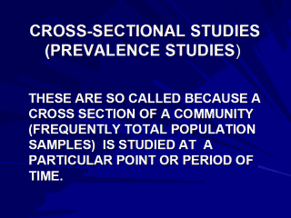 | Conducted to know about all the cases present (all the existing cases, old and new cases, all current cases) in that community i.e. Prevalence of the disease. |