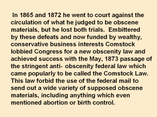 created, he and his colleagues rigorously enforced the Comstock Law, making