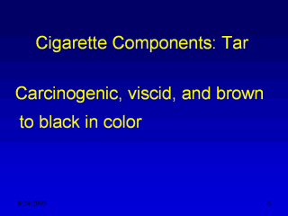 | - 50% of it remains in the lungs and bronchus - If swallowed can cause gastrointestinal cancers - Causes cell mutation, which leads to lung cancers Experimental studies on mice demonstrated that when tar was rubbed into mice’s skin the mice developed skin cancer |