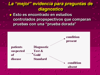 of diseases = pacientes se sospecha con enfermedad. Giagnostic test & Gold standard = Prueba disgnostica y estandar dorado Condition present = condicion presente Condition absent = condicion ausente |