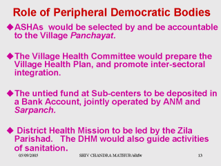 Peripheral democratic bodies at village level in India is known as