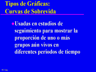 Mientras que sobrevida inicia en el 100% en el extremo izqeuierdo alto y se mueve hacia abajo a la derecha conforme los miembros del grupo mueren.